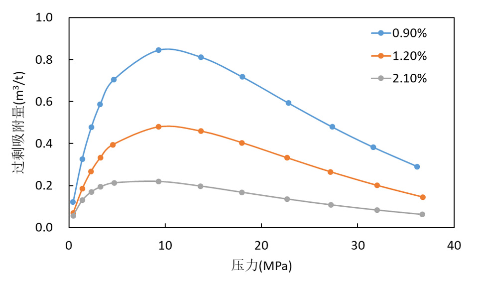 甲烷等溫吸附實驗是評價頁巖吸附能力的主要手段,根據國家標準GB/T 35210.1-2017《頁巖甲烷等溫吸附測定方法 第1部分:容積法》,采用高壓等溫吸附儀測定頁巖過剩吸附量,最高壓力達69MPa。