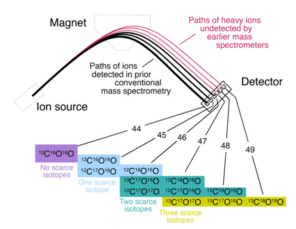 碳酸鹽礦物中13C18O16O的豐度對溫度具有敏感性,而與礦物的全巖同位素以及礦物形成時期的流體性質無關,因此被用作古溫度計,來獲得礦物的生長溫度。碳酸鹽簇同位素測溫學廣泛用于氣候演化、古環境重建、成巖作用等方面。
