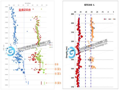 在鄂西渝東地區(qū)的某探井的同位素現(xiàn)場測試過程中,我們發(fā)現(xiàn)牛蹄塘段泥漿氣甲烷碳同位素值表現(xiàn)出來顯著的規(guī)律···